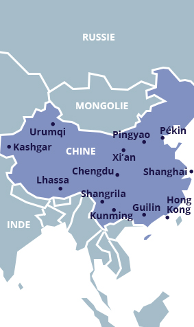 La Chine, pays à la fois futuriste et antique, est une destination pleine de contrastes qui vous laissera sous le charme tout au long de votre voyage. La Chine se n’est pas que des mégalopoles sulfureuses, c’est avant tout la plus ancienne civilisation et un passé prestigieux. En suivant un itinéraire sélectif vous pourrez découvrir les incontournables de la Chine : des grandes villes aux vertigineux grattes ciel à la Grande Muraille tout en passant à travers des villages historiques en vous réveillant au chant du coq pour rejoindre des pèlerins t